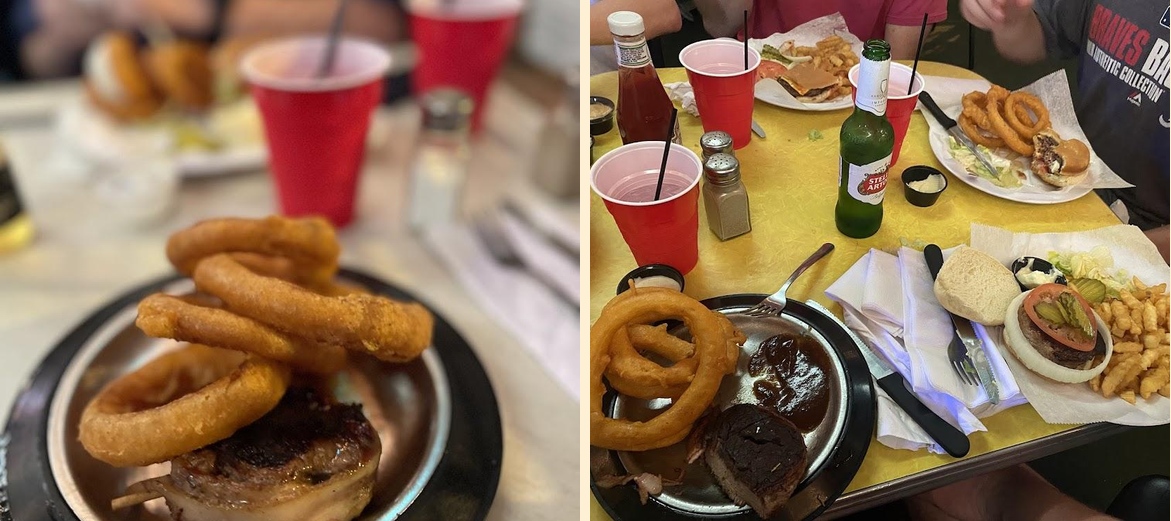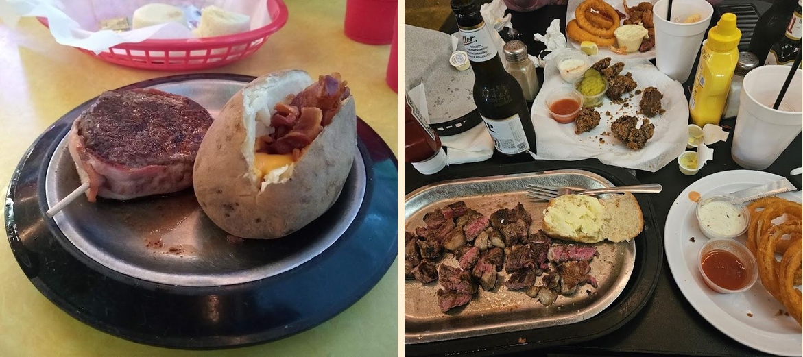 Popular dishes include the onion rings, various steaks, and the cheeseburger. Don't miss their loaded baked potato as a side!